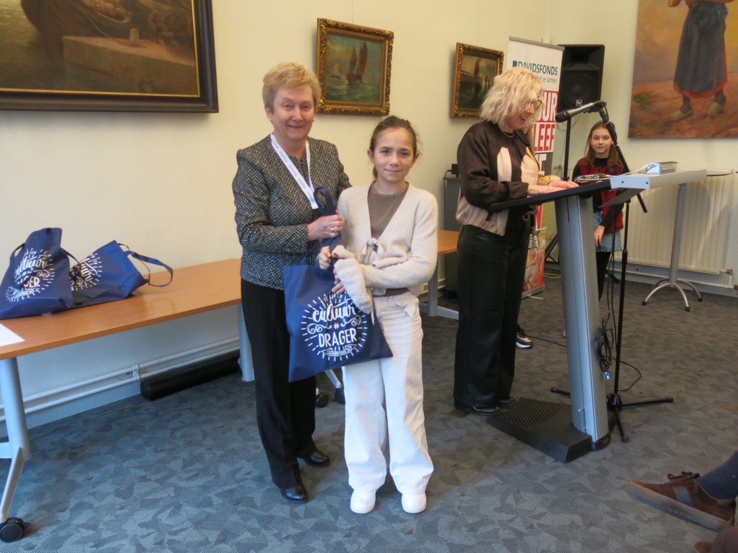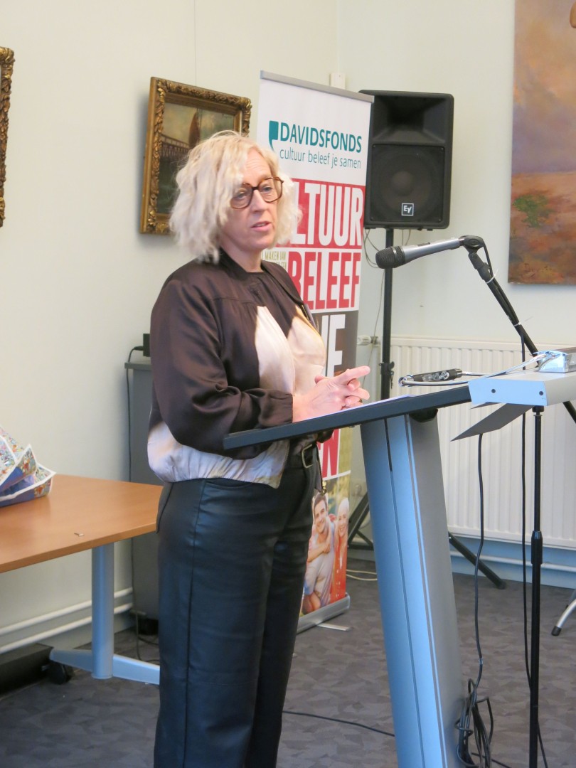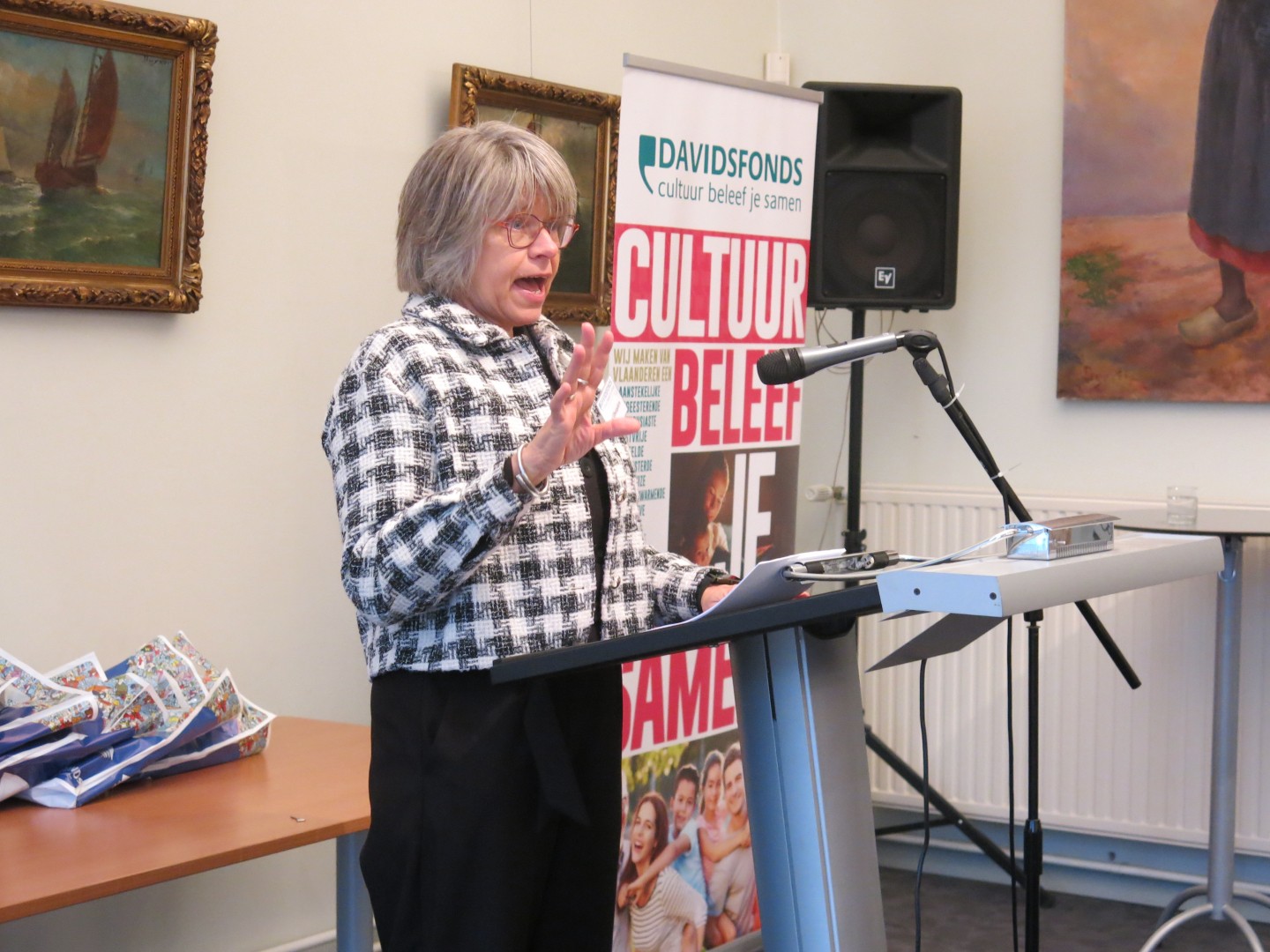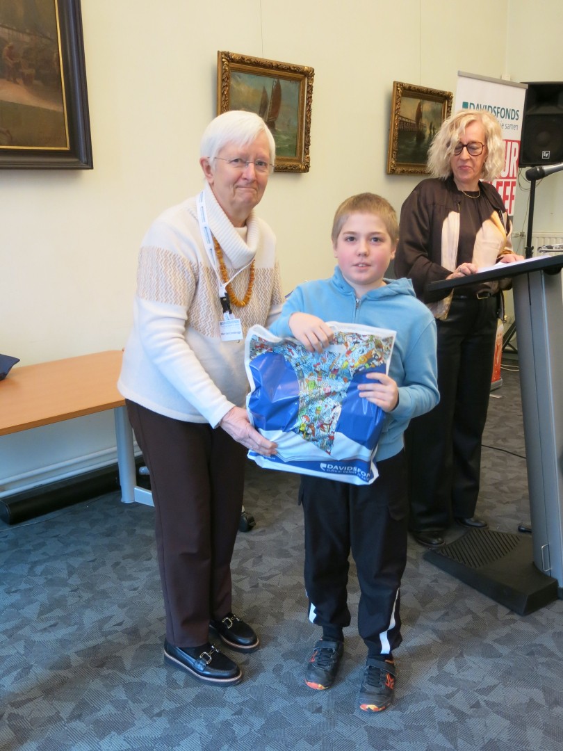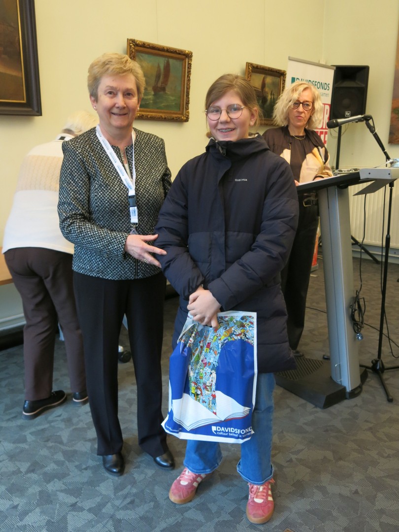 De winnaars JJ in reeks 1. Margot Debaene: vooraan rechts. Kris Opdedrynck, algemeen directeur Davidsfonds vzw: achteraan.