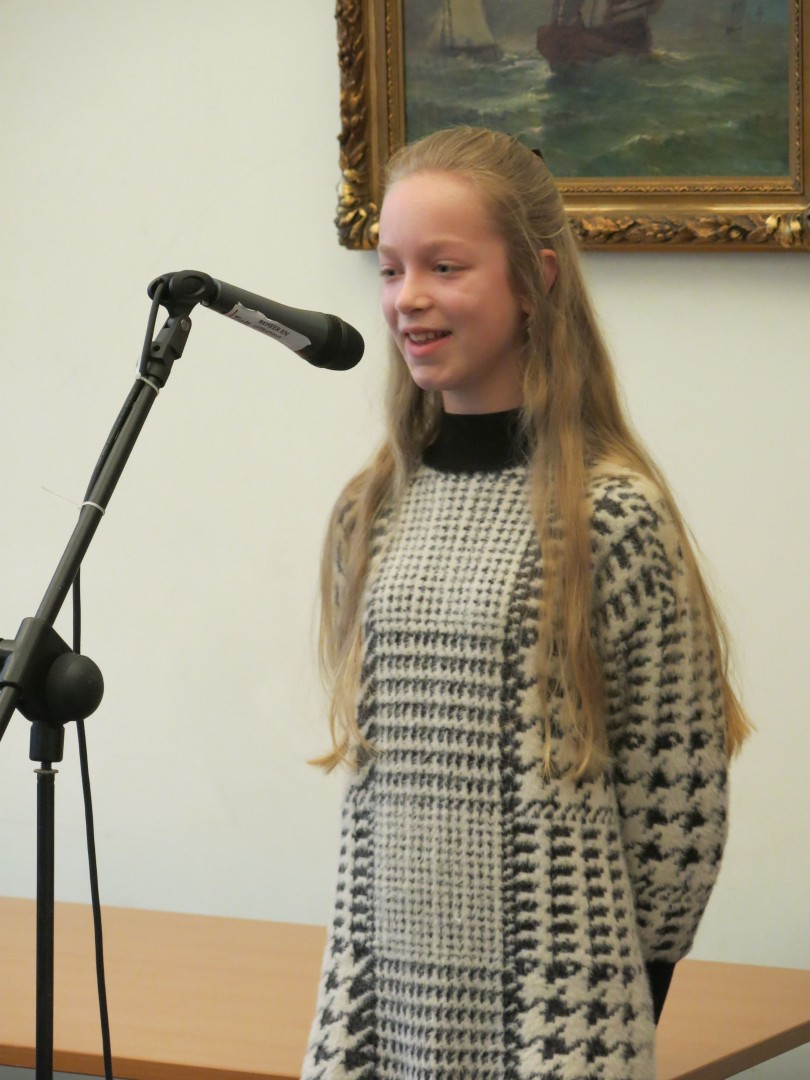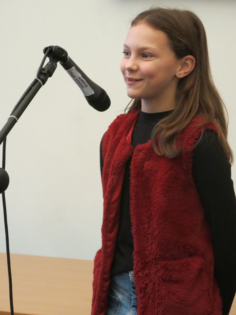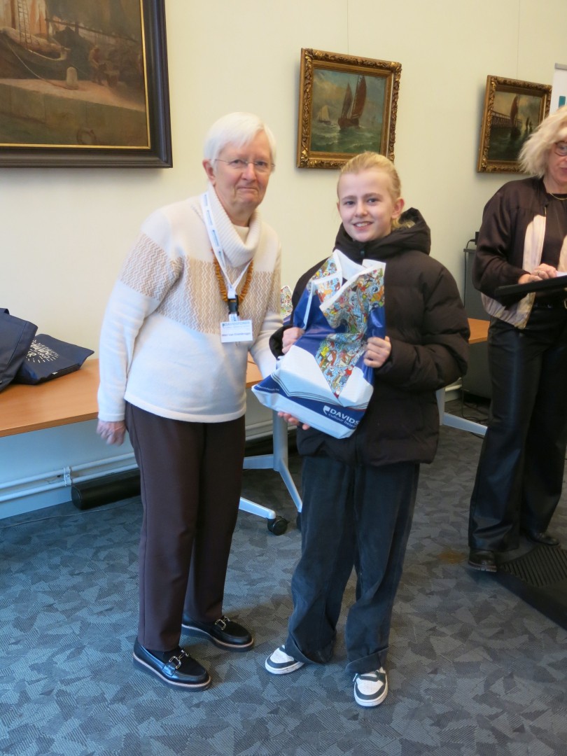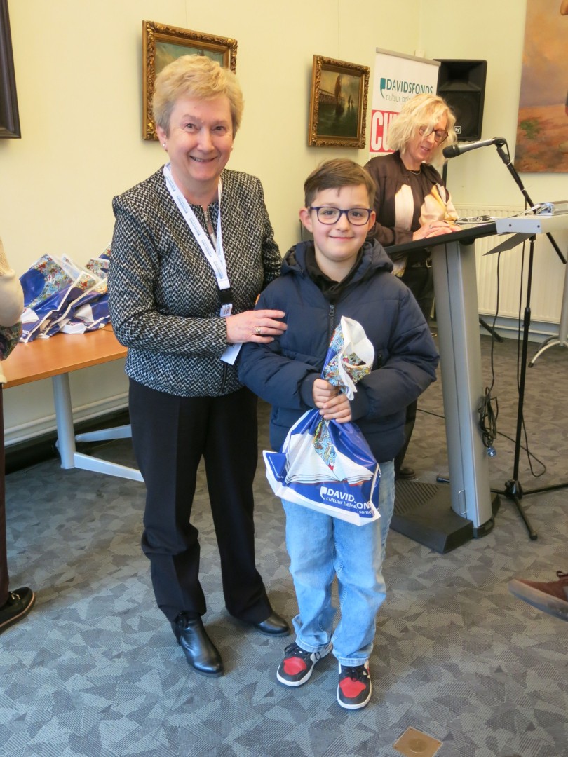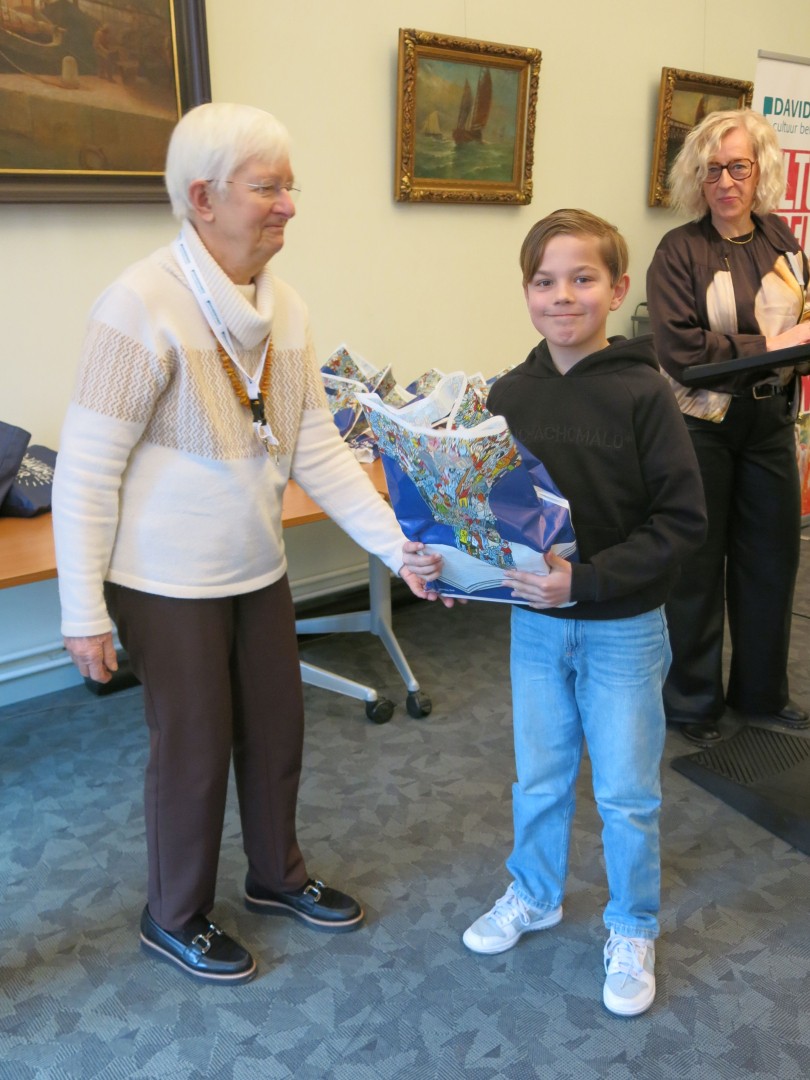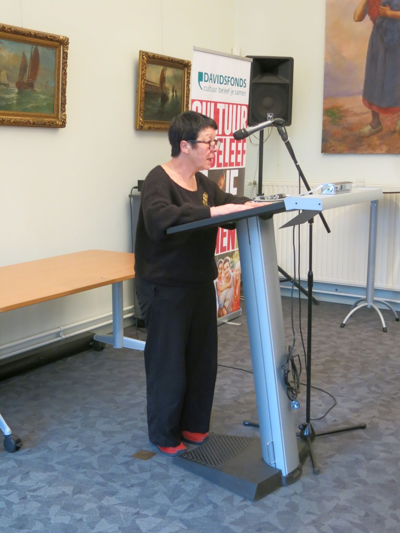 De winnaars JJ in reeks 1. Margot Debaene: vooraan rechts. Kris Opdedrynck, algemeen directeur Davidsfonds vzw: achteraan.
